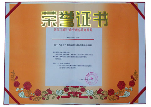 “浪莎”確認(rèn)為馳名商標(biāo)