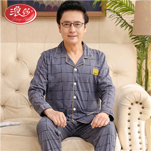 浪莎男士睡衣男長袖棉春秋冬款開衫休閑青年中年睡衣家居服可外穿