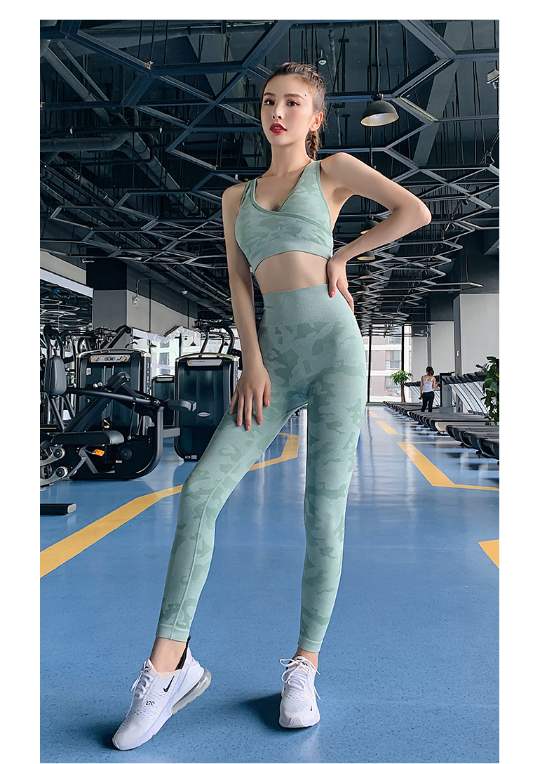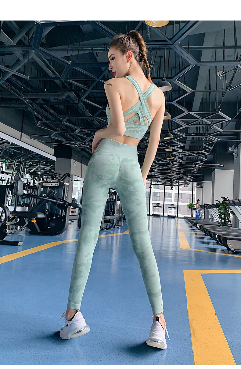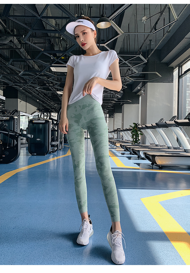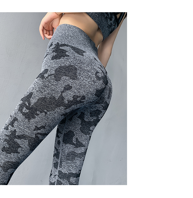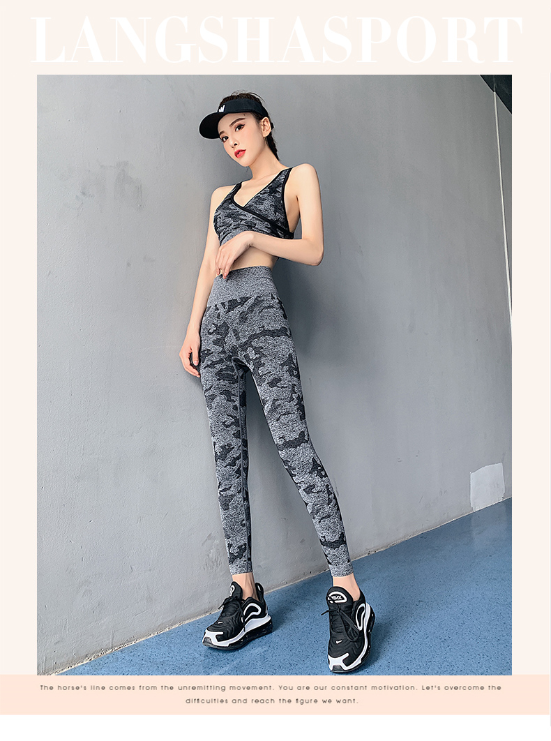浪莎高腰健身褲女彈力緊身套裝提臀迷彩速干跑步運動收腹瑜伽褲