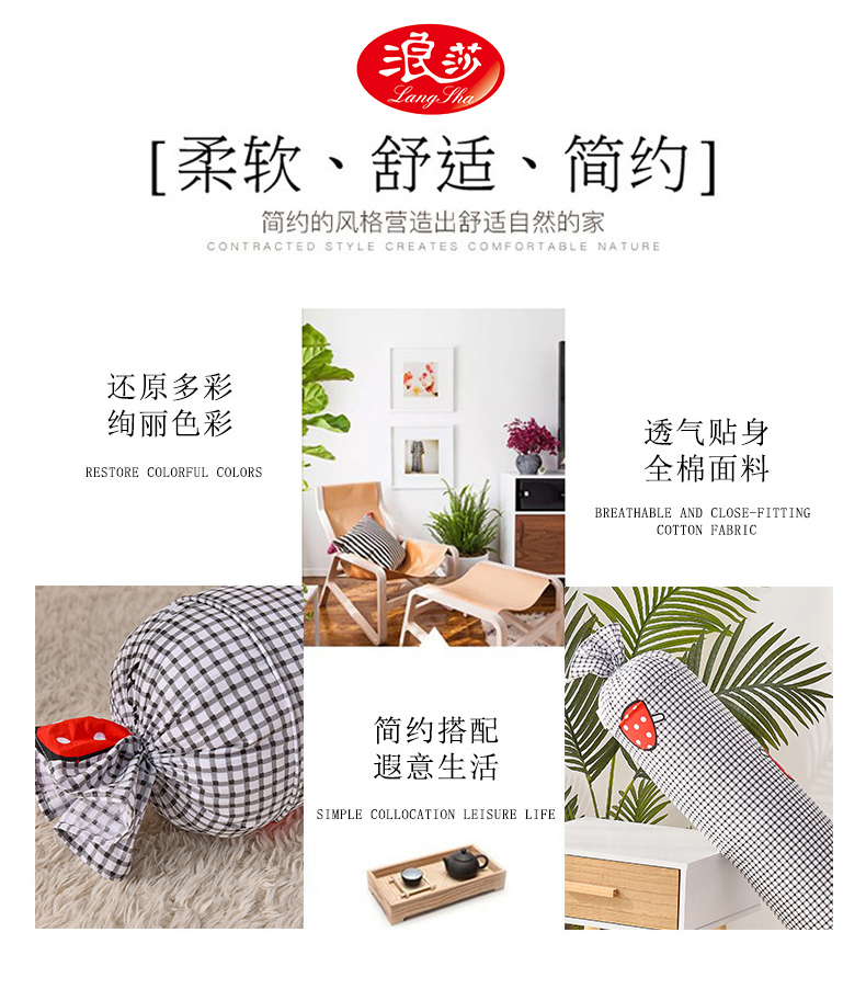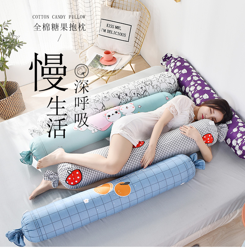 浪莎夏天純棉糖果圓柱枕頭夏季睡覺側(cè)睡夾腿抱枕長(zhǎng)條枕女生可拆洗